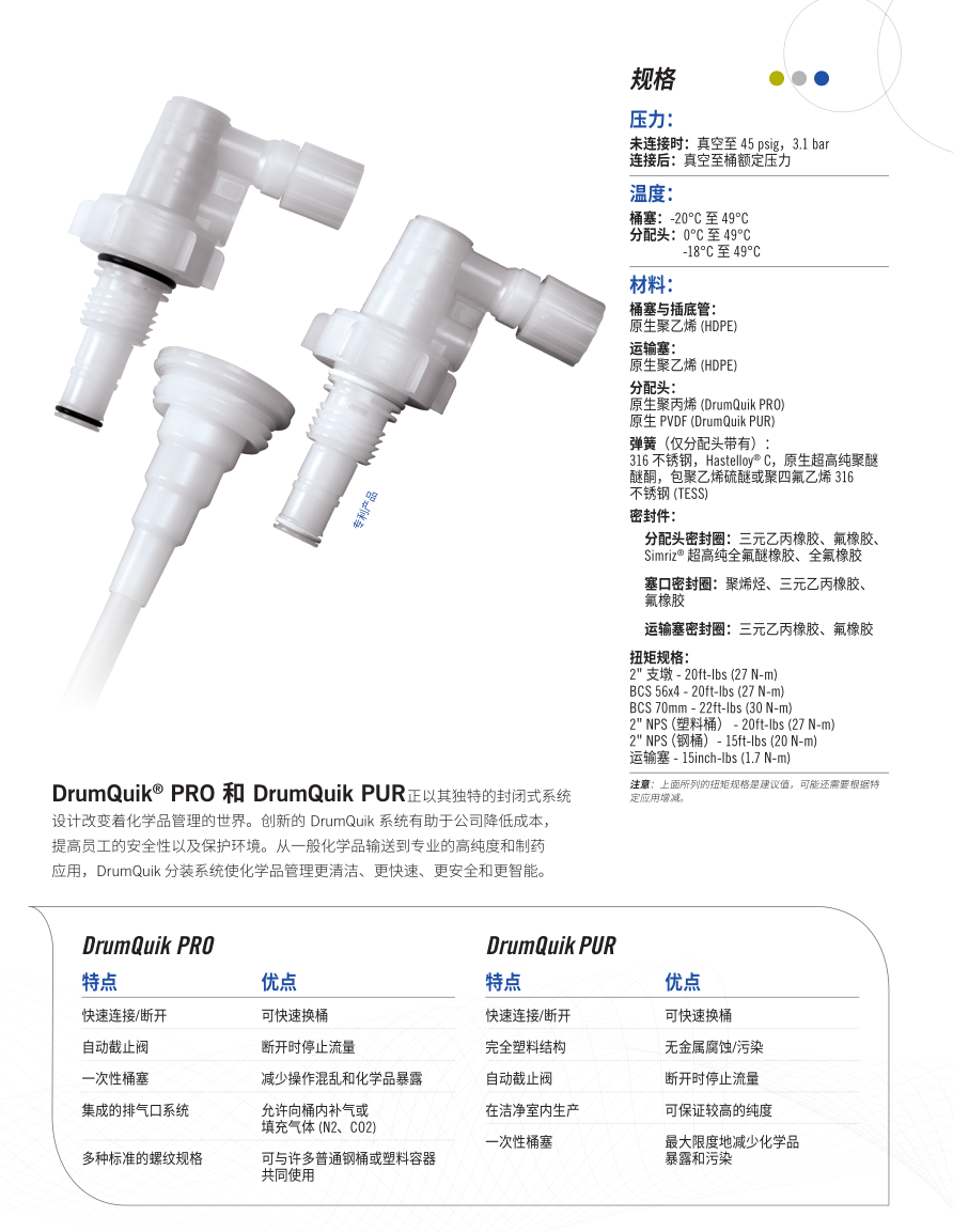 DrumQuik® PUR is changing the world of chemical management with its unique closed-system design. The DrumQuik dispensing system for smarter chemical management provides safe, easy and economical extraction of chemicals from drums, jerricans and IBC totes—while reducing spills, containing hazardous fumes and enhancing workplace safety.